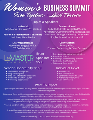 Foster meaningful networking and support systems among women professionals and entrepreneurs in the Greater Tomball community.